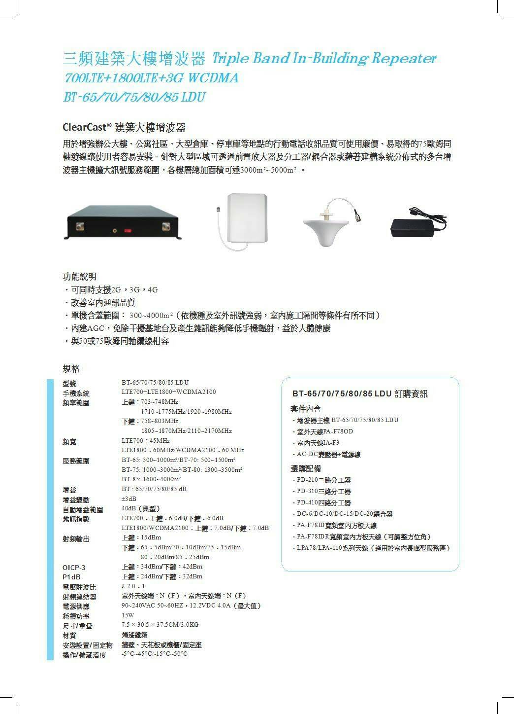 三頻建築大樓增波器 BT65 LDU 4G 900 1800 3G