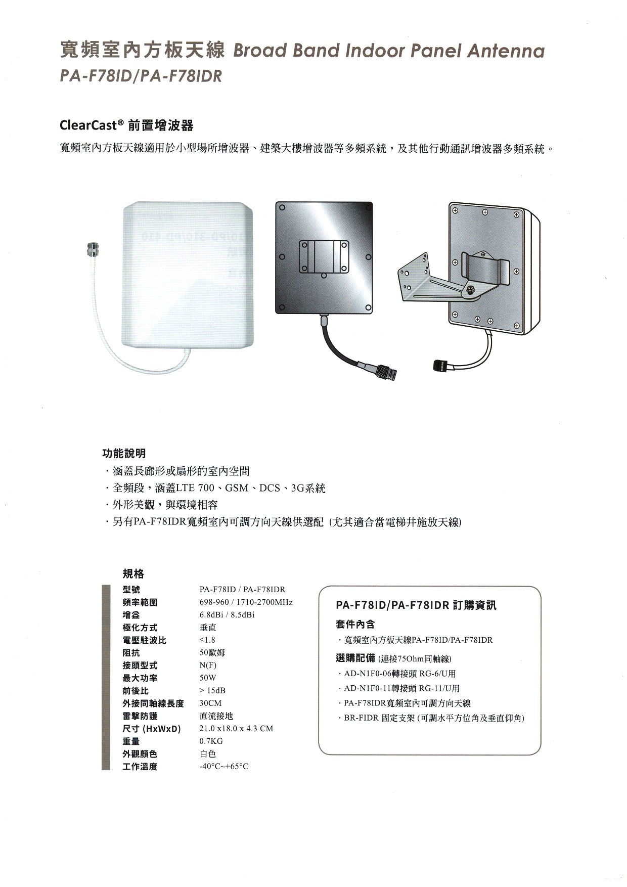 室內棒形天線 / 室外平板天線 / 寬頻天線