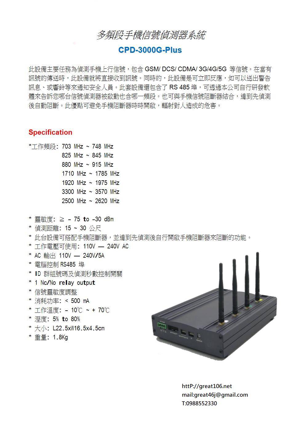 多頻段手機信號偵測器系統