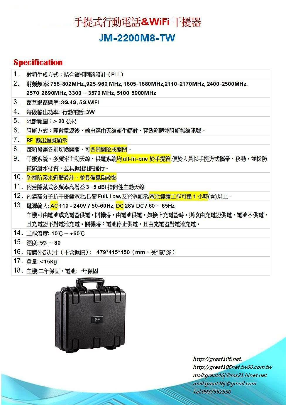 最新5G 手提式行動電話&WiFi干擾器 JM-2200M8-TW