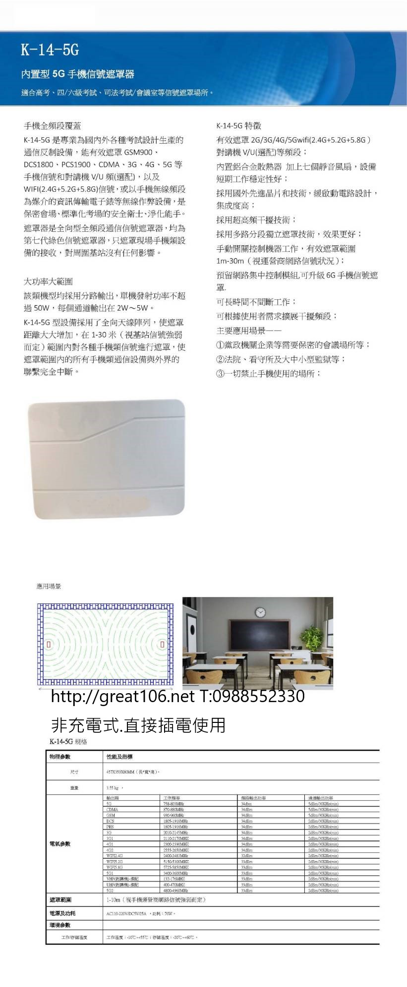 K-14-5G 遮蔽GSM900.DCS1800.PCS1900.CDMA.3G.4G.5G 手機訊號 WifFi 無線電對講機 可選購增設 電波阻斷器 50W