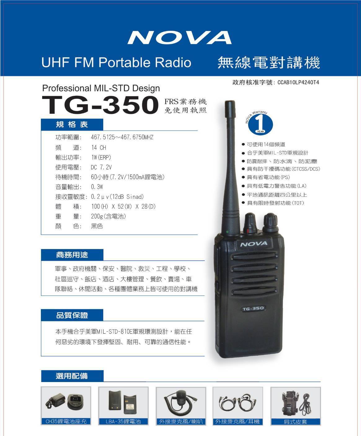 無線電對講機 TG-350